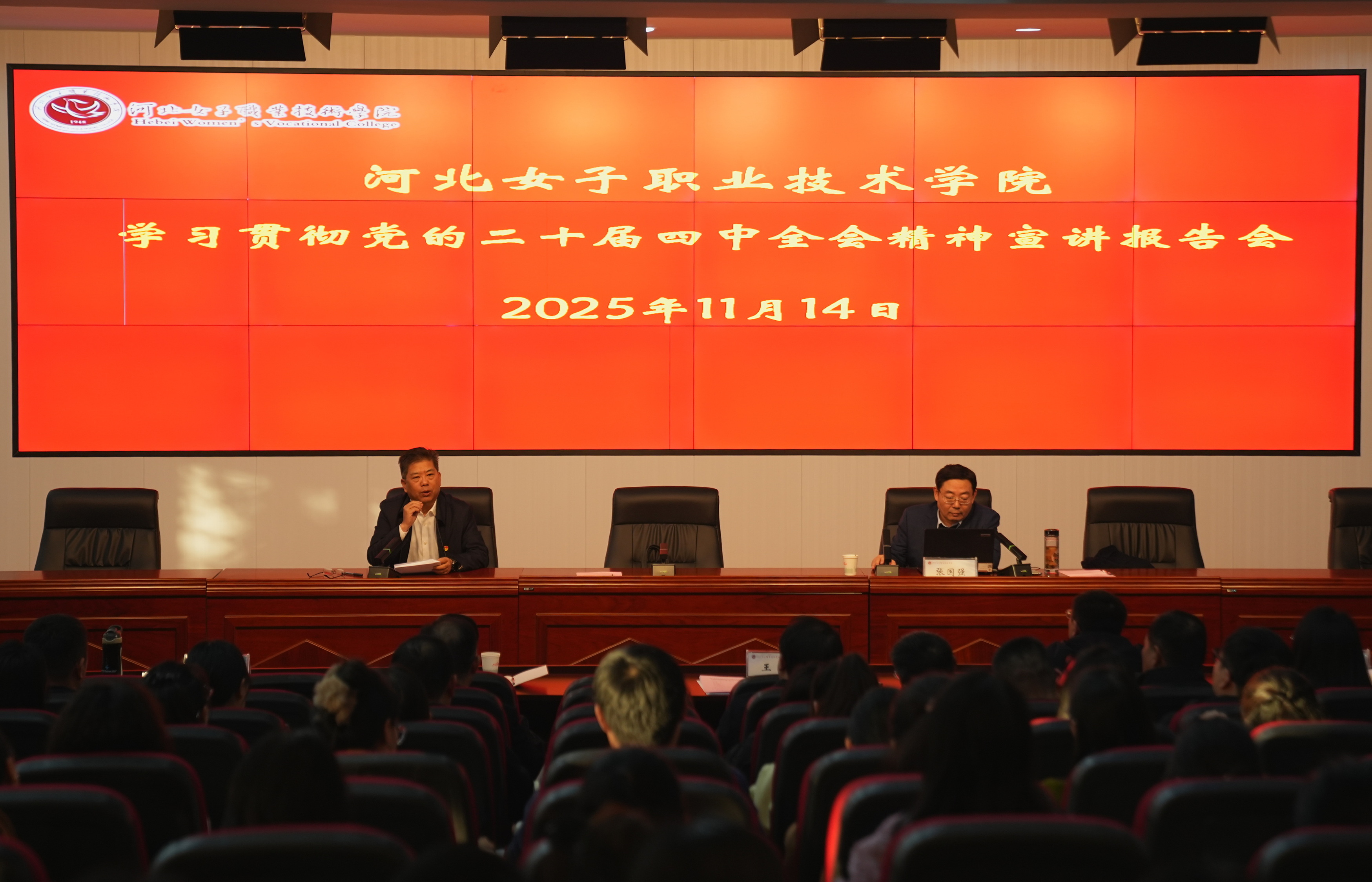 為推動黨的二十屆四中全會精神在校園落地生根、入腦入心,引導廣大師生深刻把握全會擘畫的“十五五”發展宏偉藍圖,11月14日下午,河北女子職業技術學院在報告廳召開第八次黨委理論學習中心組(擴大)會議,專題學習貫徹黨的二十屆四中全會精神。學院黨委班子成員、全體教工、學生代表參加會議,省婦聯宣傳部三級調研員鞏嘉祺、機關黨委一級主任科員王宏列席會議,會議由黨委書記麻士琦主持。