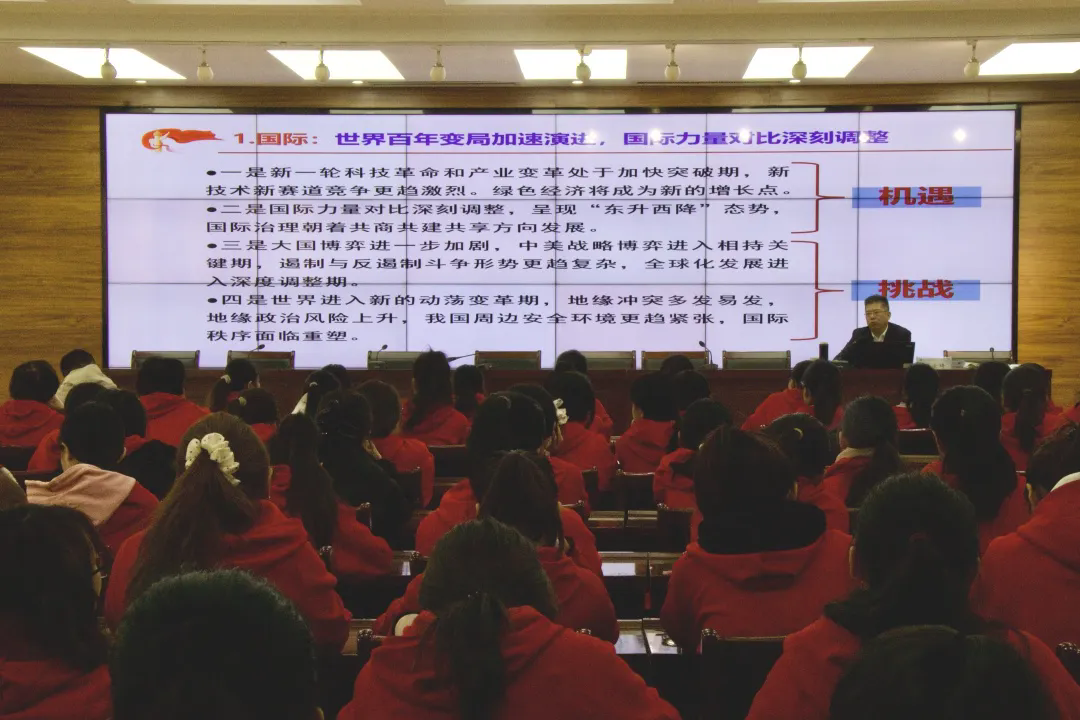 11月28日下午,河北女子職業技術學院黨委書記麻士琦走進包聯的學前教育系、經濟管理系,為190名優秀學生代表宣講黨的二十屆四中全會精神,以青年視角搭建理論與青春的橋梁,讓全會精神在女院學子心中落地生根。